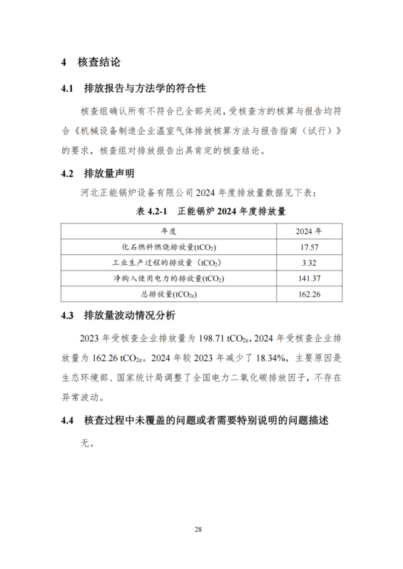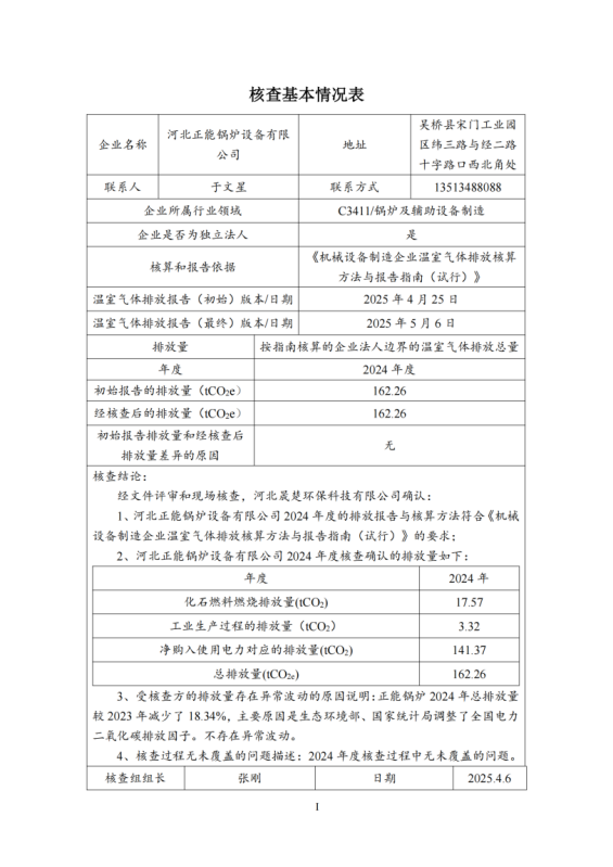 河北正能鍋爐設(shè)備有限公司-碳核查報(bào)告-2024年度